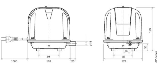 - L'AP-60N délivre 47 litres par minute à une pression de travail de 2 mètres de profondeur.