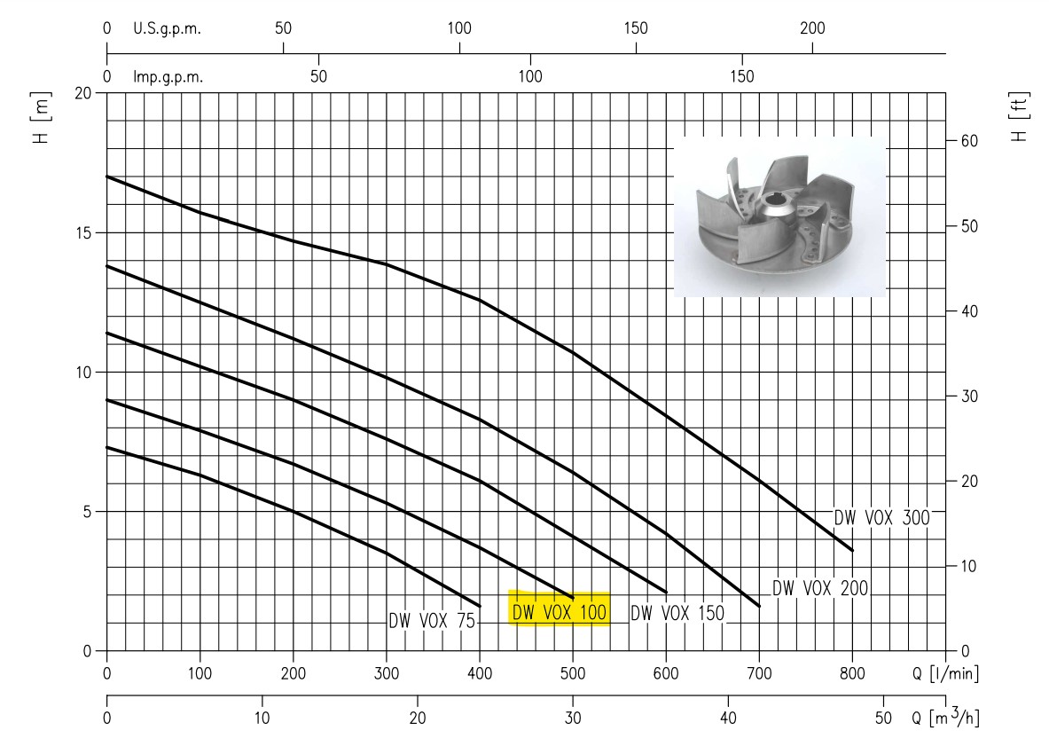 Sa gamme permet le relevage d'eaux chargées pouvant contenir des corps solides en suspension jusqu'à 50 mm de diamètre.