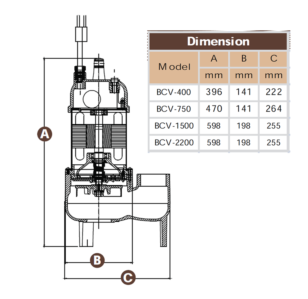 Retrouvez la pompe de relevage submersible avec flotteur modèle BCV-400A spécifique pour l'évacuation et relevage des eaux usées et eaux chargées. Cette pompe est adaptée pour l'installation dans une station de relevage.