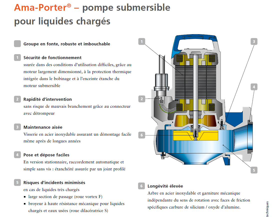 Besoin d'informations complémentaires sur KSB Ama Porter 503 SE - Pompe de relevage submersible pour eaux chargées - 1,1kW 28,8 m³/h 230V ?